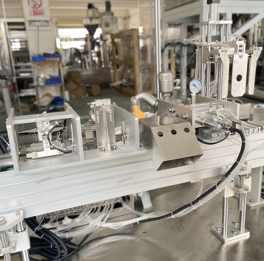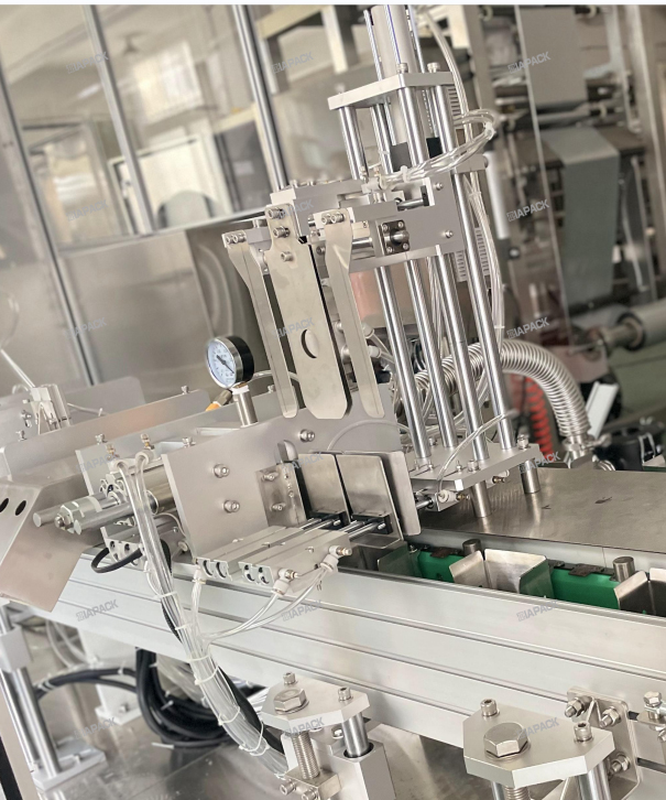 เครื่องนี้ออกแบบพิเศษสำหรับทำถุงขยายขนาดได้พร้อมติดฉลากด้านบน หลังจากถุงเต็มพร้อมผลิตภัณฑ์วางบนเครื่องนี้ เครื่องนี้จะนำถุงไปผ่านการพับปากถุงครั้งเดียวแล้วติดฉลาก โครงเครื่องทำโดย SUS304 .PLC และหน้าจอสัมผัสที่นำมาใช้โดยแบรนด์ Siemens และชิ้นส่วนนิวแมติกใช้แบรนด์ SMC ส่วนประกอบไฟฟ้าหลักใช้แบรนด์ Omron และ Schneider เครื่องนี้ทำงานร่วมกับเครื่องบรรจุภัณฑ์อัตโนมัติเพื่อเข้าถึงการติดฉลากด้านบนของถุงที่เสร็จแล้ว เครื่องนี้สามารถเข้าถึงฟังก์ชันได้โดยอัตโนมัติ การแยกฉลาก การส่งฉลาก ตัวตรวจจับฉลากและการกดฉลาก