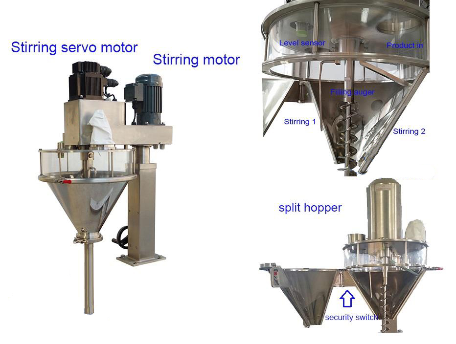 เครื่องเจาะแบบ Auger Filler นี้จัดเตรียมถังบรรจุด้านข้างเพื่อทำความสะอาดทำความสะอาดง่าย