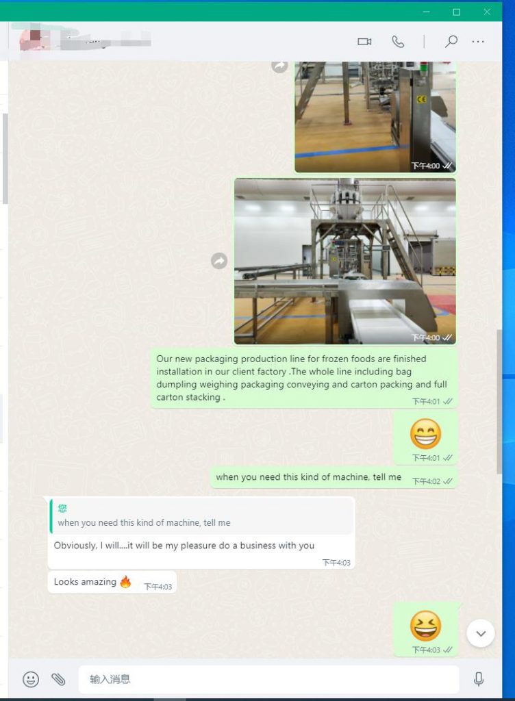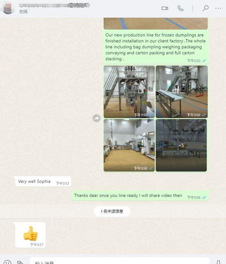 สายการบรรจุถุงอาหารแช่แข็งอัตโนมัติและสายการบรรจุกล่องได้รับการติดตั้งสำเร็จในโรงงานของลูกค้า!