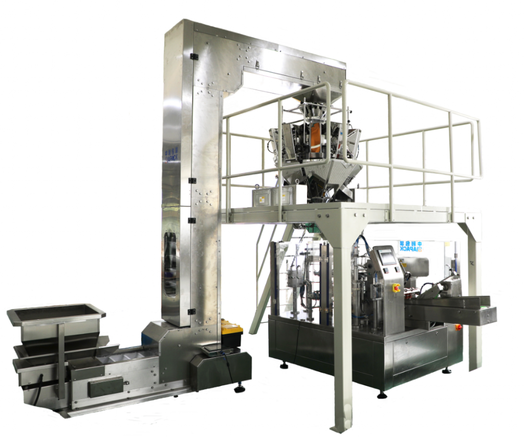 เครื่องบรรจุถุงหมุน ด้วยการใช้ยาที่แตกต่างกัน (เช่นเครื่องชั่งมัลติเฮดฟิลเลอร์สว่านฟิลเลอร์เหลว ฯลฯ ) สามารถใช้กับการบรรจุอัตโนมัติสำหรับเม็ด, ผง, ของเหลว, วาง ฯลฯ ชนิดของผลิตภัณฑ์ที่แตกต่างกันกับกระเป๋าซิปยืนขึ้น