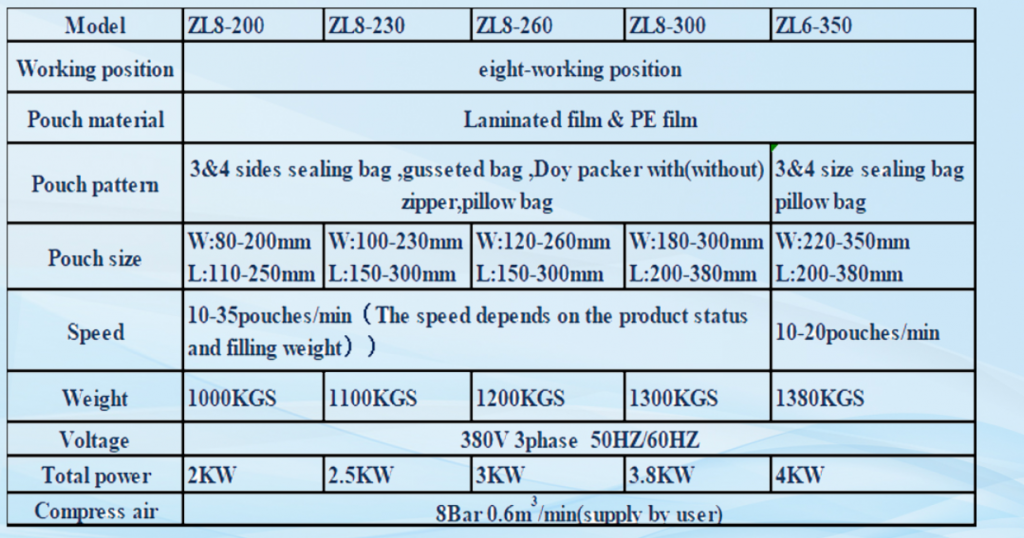 - The speed of this machine is adjusted by frequency conversion with the range, and the actual speed depends on the type of products and pouch