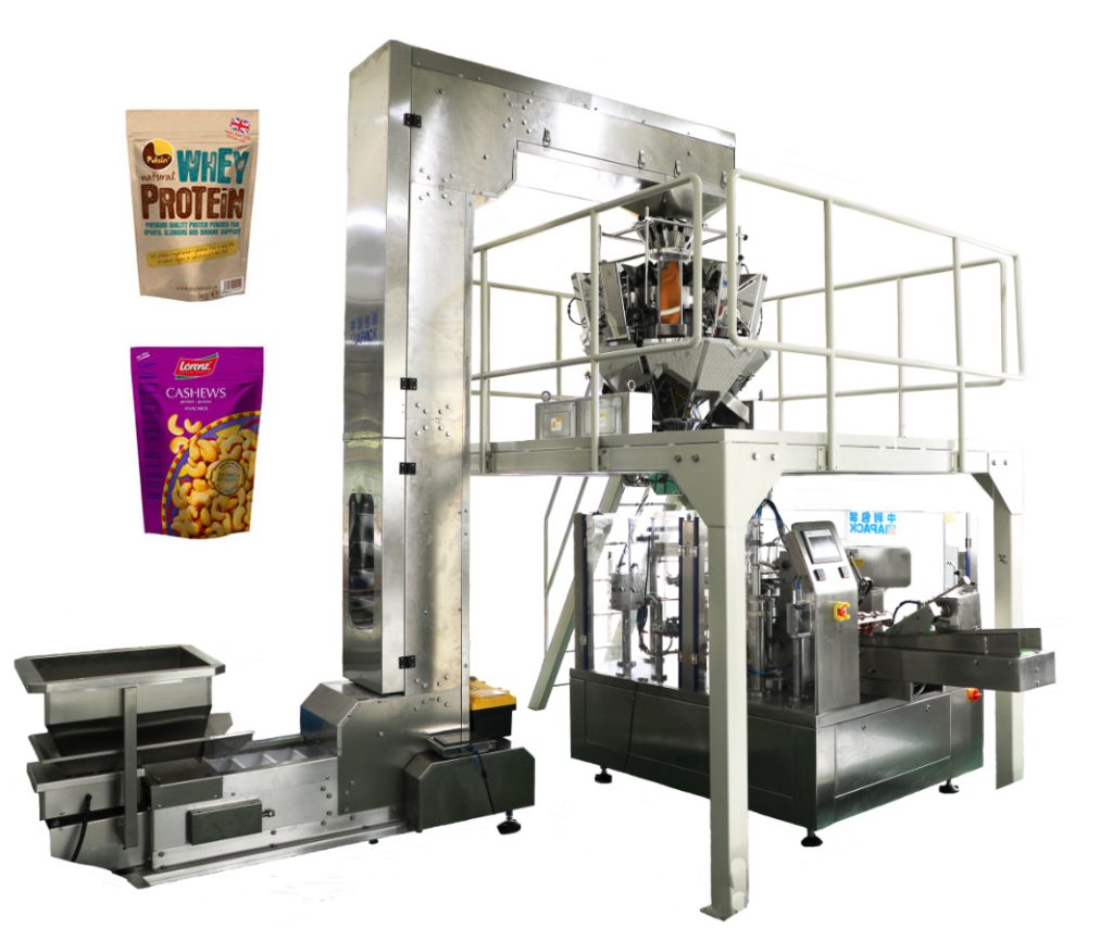 เครื่องบรรจุถุงหมุน ด้วยการใช้ยาที่แตกต่างกัน (เช่นเครื่องชั่งมัลติเฮดฟิลเลอร์สว่านฟิลเลอร์เหลว ฯลฯ ) สามารถใช้กับการบรรจุอัตโนมัติสำหรับเม็ด, ผง, ของเหลว, วาง ฯลฯ ชนิดของผลิตภัณฑ์ที่แตกต่างกันกับกระเป๋าซิปยืนขึ้น