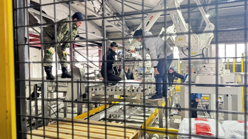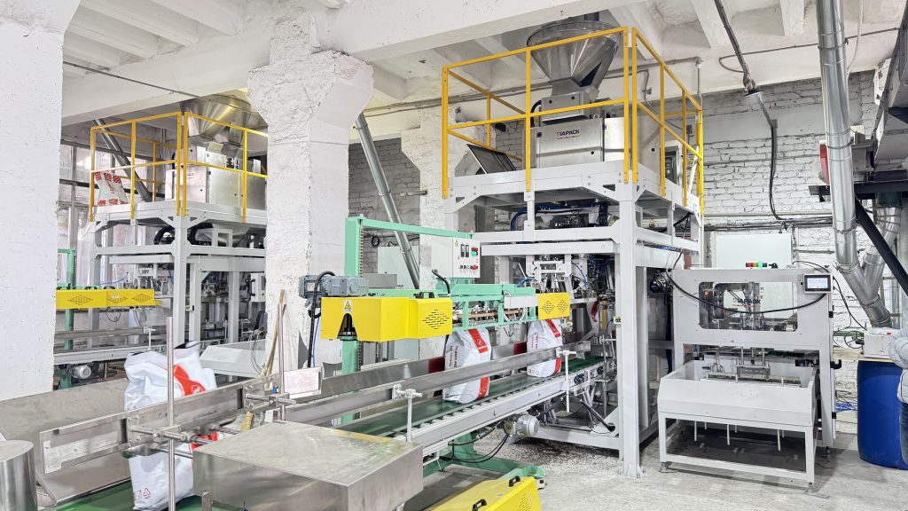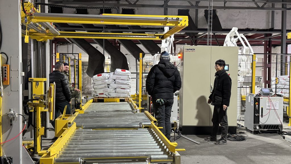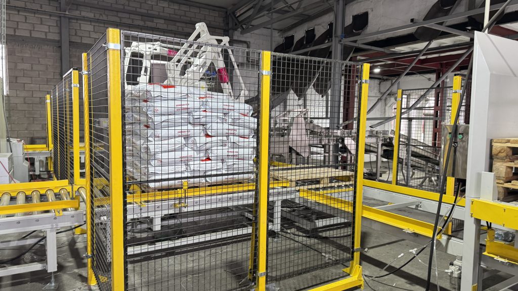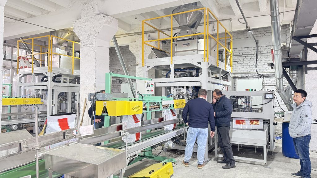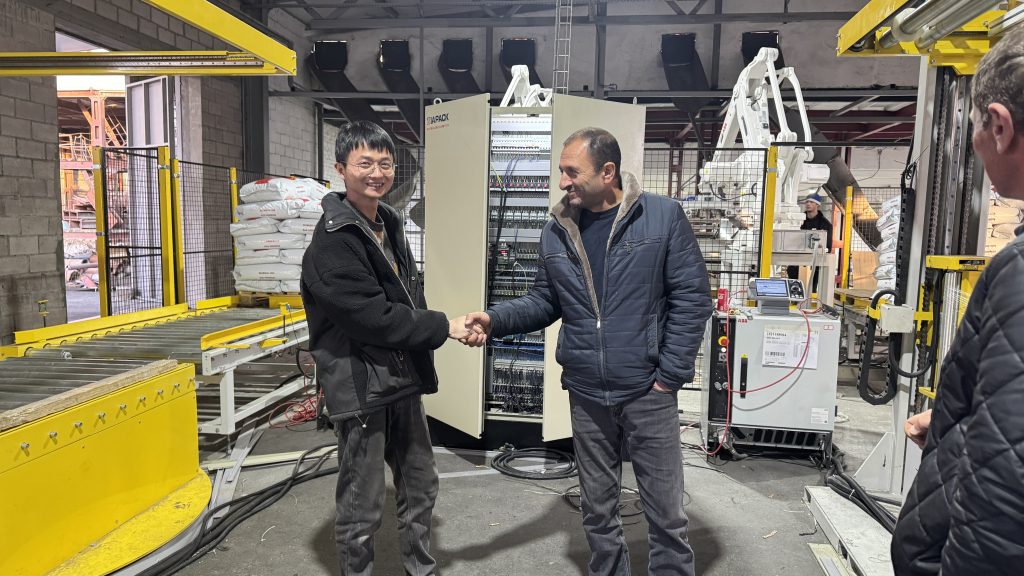 คุณอยู่ที่นี่: บ้าน » ข่าว » Two units 25kg pet food automatic weighing bagging conveying and palletizing line start running in our client factory